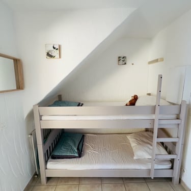 Un coin nuit séparé du séjour avec deux lits simples de 90x190
